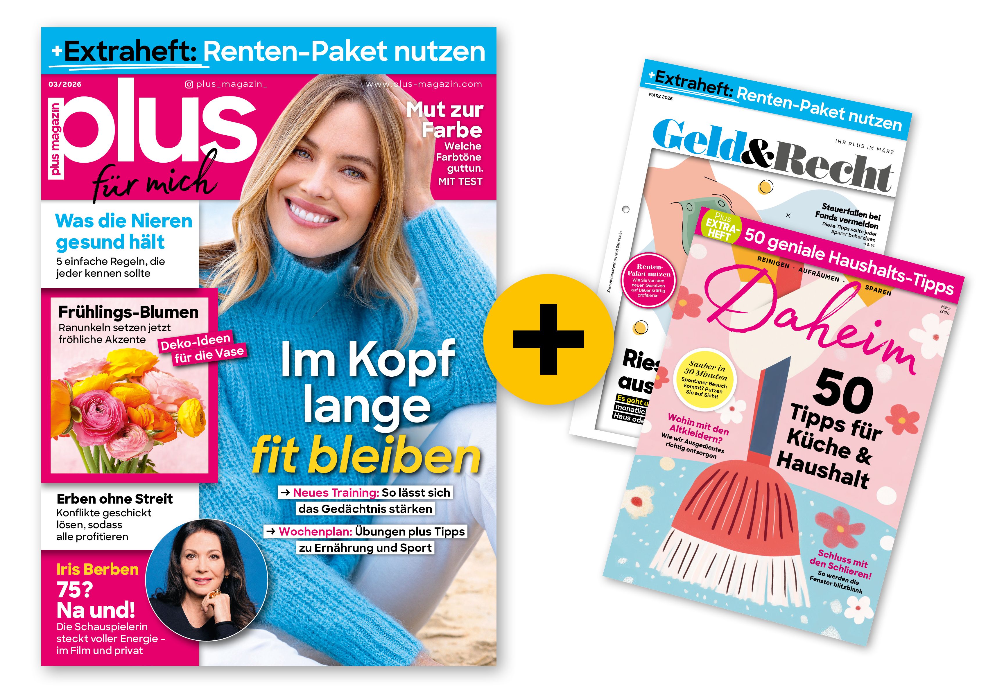 plus Magazin liefert seit fast 25 Jahren Monat für Monat die Themen, die Sie besonders interessieren: Gesundheit, Vorsorge, Rente, Familie, Reise, DIY, Psychologie, Kultur und Ernährung. Hochwertige Gestaltung und gut verständliche, praxisnahe Texte sorgen für den Mehrwert, den man von einem anspruchsvollen Magazin erwarten kann.